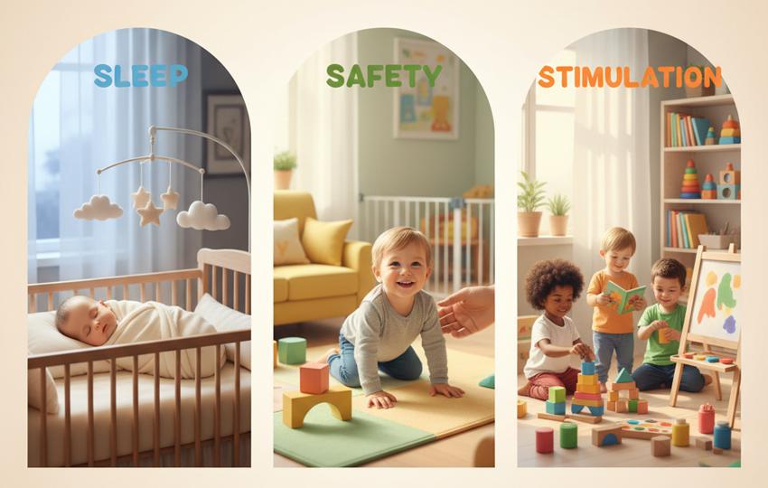 Sleep, safety, and stimulation form the foundation of a baby’s early development. Together, they ensure that a child’s body grows
